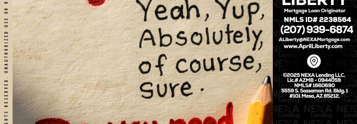 Hi, my name is April Liberty. I’m a Loan Officer with NEXA Lending LLC., offering personalized mortgage solutions, fast customized quotes, great rates and service with integrity.