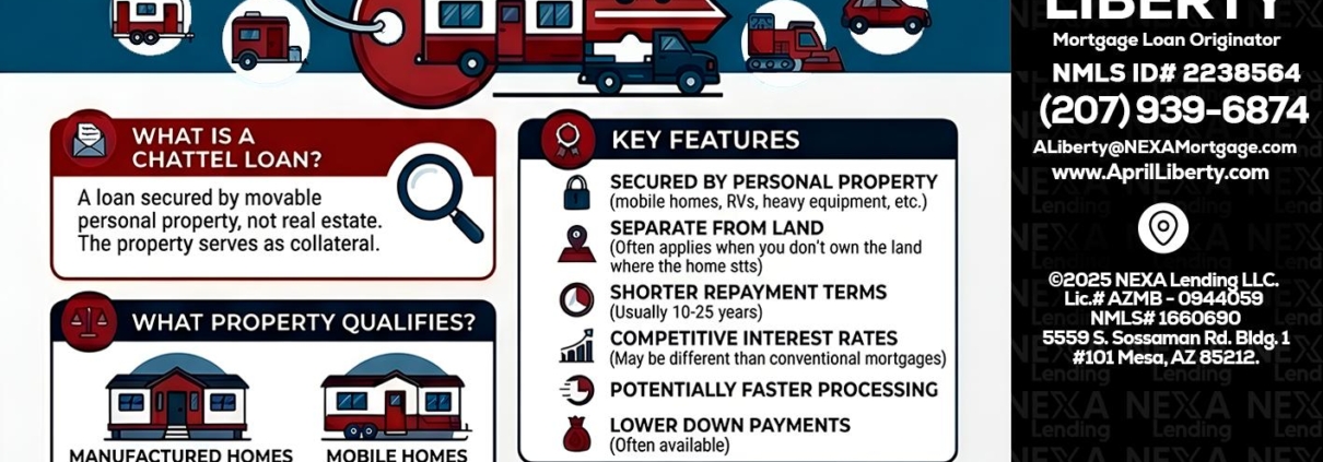 Hi, my name is April Liberty. I’m a Loan Officer offering personalized mortgage solutions, fast customized quotes, great rates and service with integrity. If you’re interested in learning more about the Chattel loan or any other, just let me know and I’ll walk you through your options.