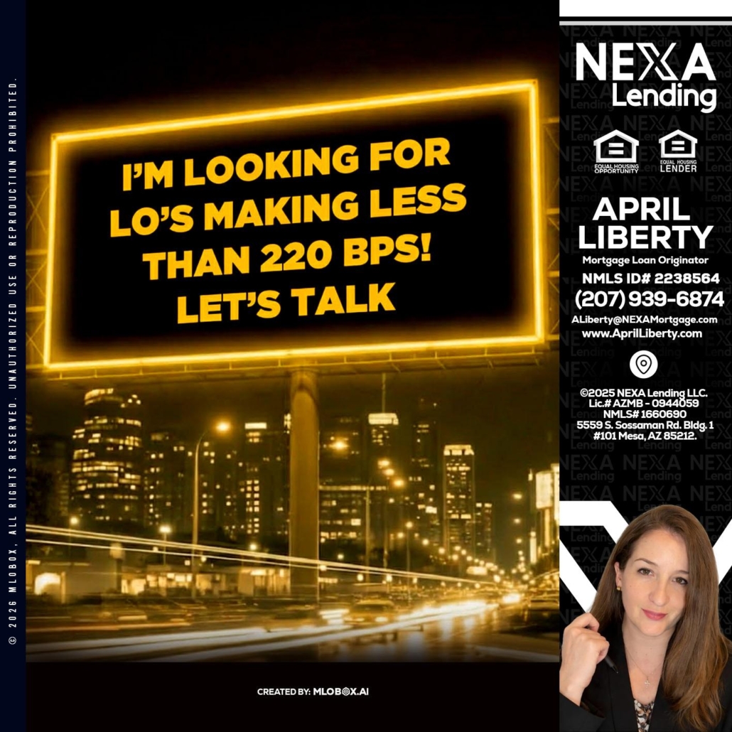 Hi, my name is April Liberty. I’m a Loan Officer with NEXA Lending LLC., offering personalized mortgage solutions, fast customized quotes, great rates and service with integrity.