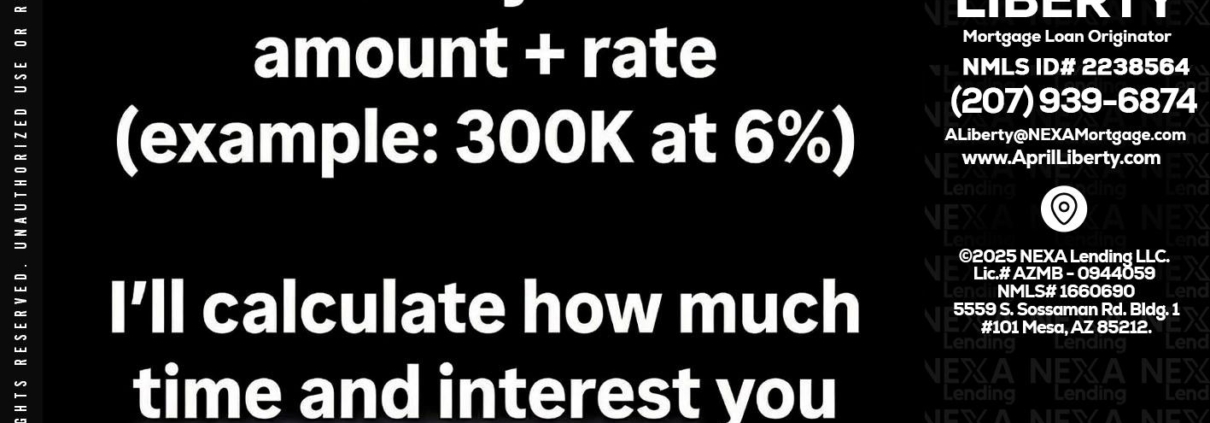 most owners - April Liberty -Mortgage Loan OriginatorHi, my name is April Liberty. I’m a Loan Officer with NEXA Lending LLC., offering personalized mortgage solutions, fast customized quotes, great rates and service with integrity.
